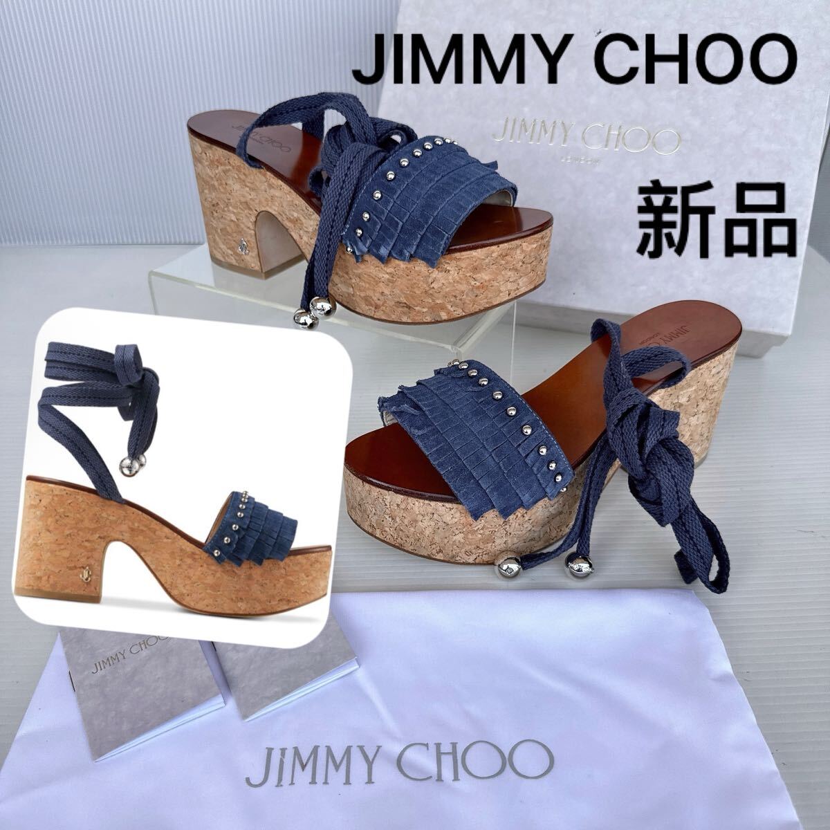 - JIMMY CHOO ジミーチュウ ウェッジソール スタッズ レースアップ ストラップ ミュール サンダル 厚底 レーディス シューズ 靴 新品 37