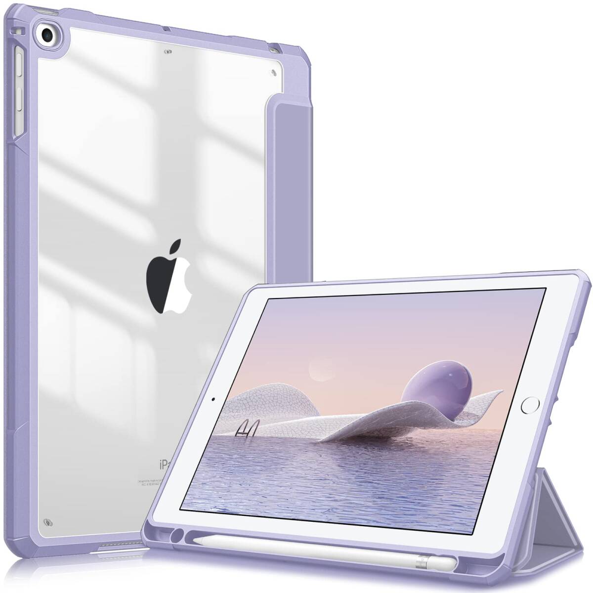 > 軽量 薄型 スリープ機能 三つ折スタンド 収納可能 傷つけ防止 Pencil Apple PU合成レザー 透明バックカバー ケース