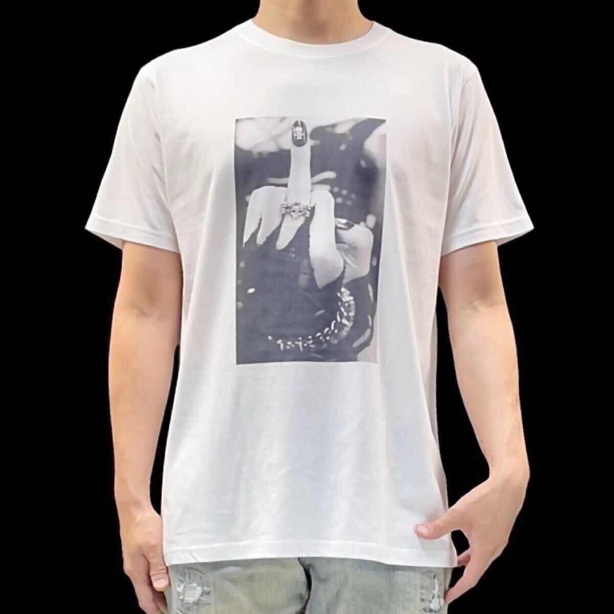 - 新品 ドクロ ネイル リング FUCK YOU 中指立て 挑発ジェスチャー 指無しグローブ パンクロックファッション Tシャツ ユニセックス Mサイズ
