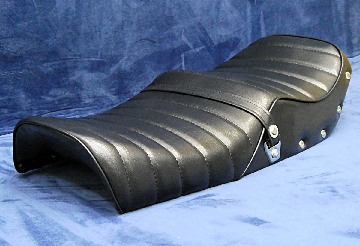 - Z250FT黒皮 ボタン カスタム タックロールシート/ブラック レザーKZ250A標準 ダブル アンコ抜き 段シートBEETキジマ あんこ抜きローダウン