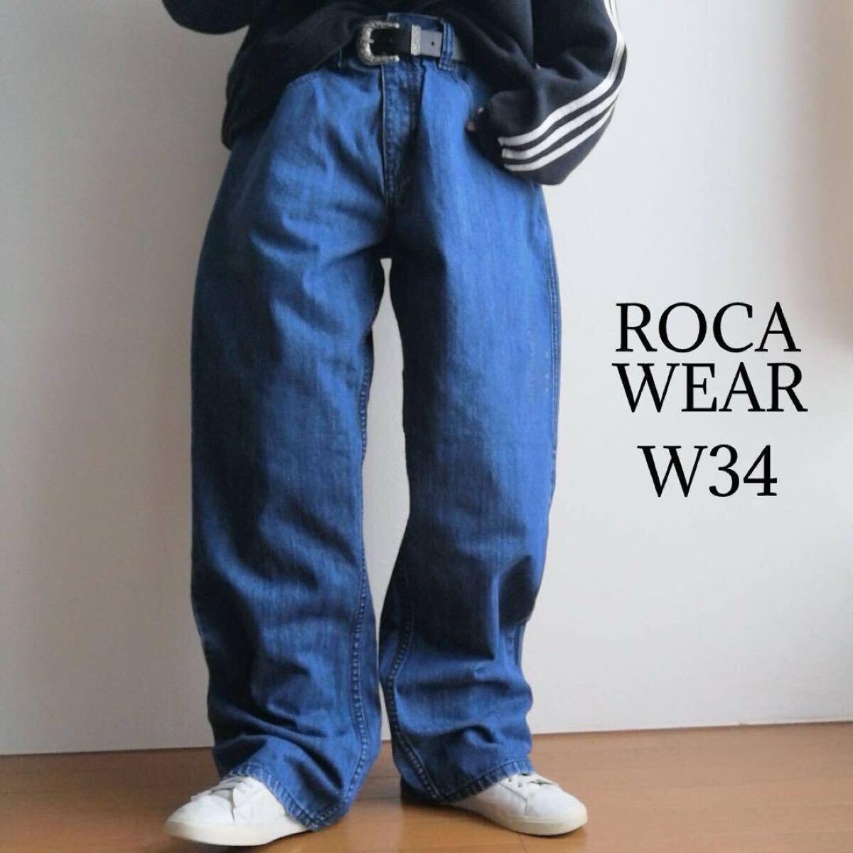 > ROCAWEAR ロカウェア バギーデニム ジーンズ バックプリント ポケット デザイン ダークブルー B系 パンツ メンズ W34 L31 古着 / 3815