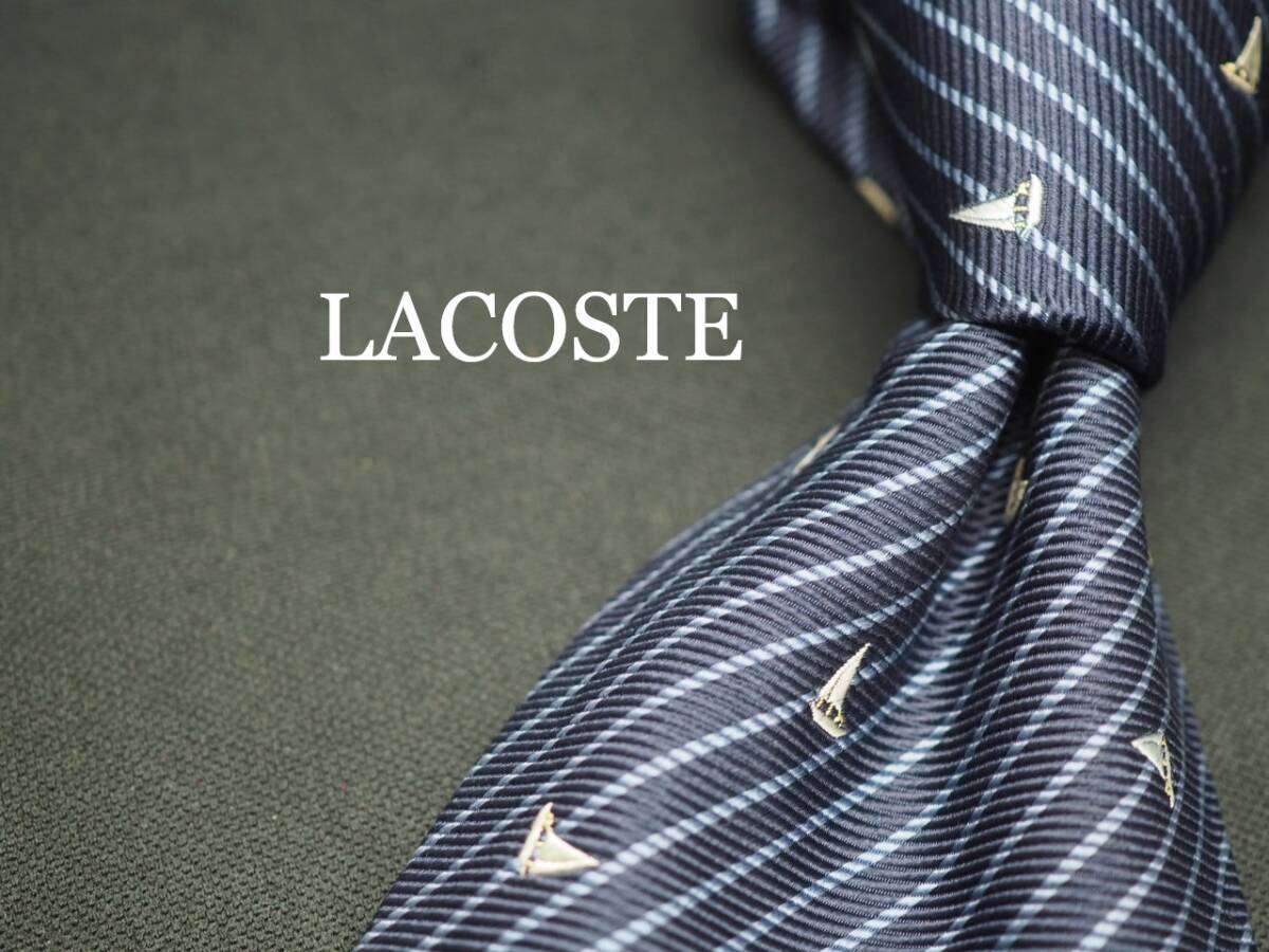 - 美品【LACOSTE ラコステ】 F1182 ネイビー SILK ブランド ネクタイ 古着 良品