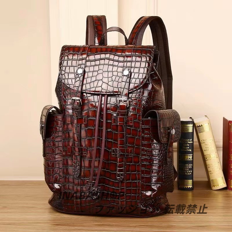 - クロコダイルレザーのリュックサック ワニ革 メンズ 旅行用大容量バックパック コンピューターバッグ