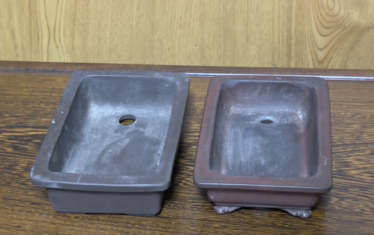 - 常滑鉢「山秋造印」常滑焼 時代鉢 山秋造印 烏泥外縁長方鉢 盆栽鉢 2個セット 盆器 盆栽鉢