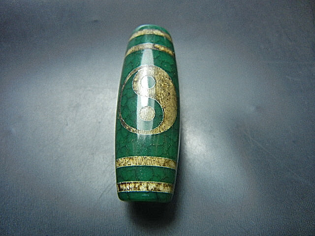 - ★西蔵至純天珠★XT9476 緑砂龍紋 陰陽太極 特上級 39mm入手難