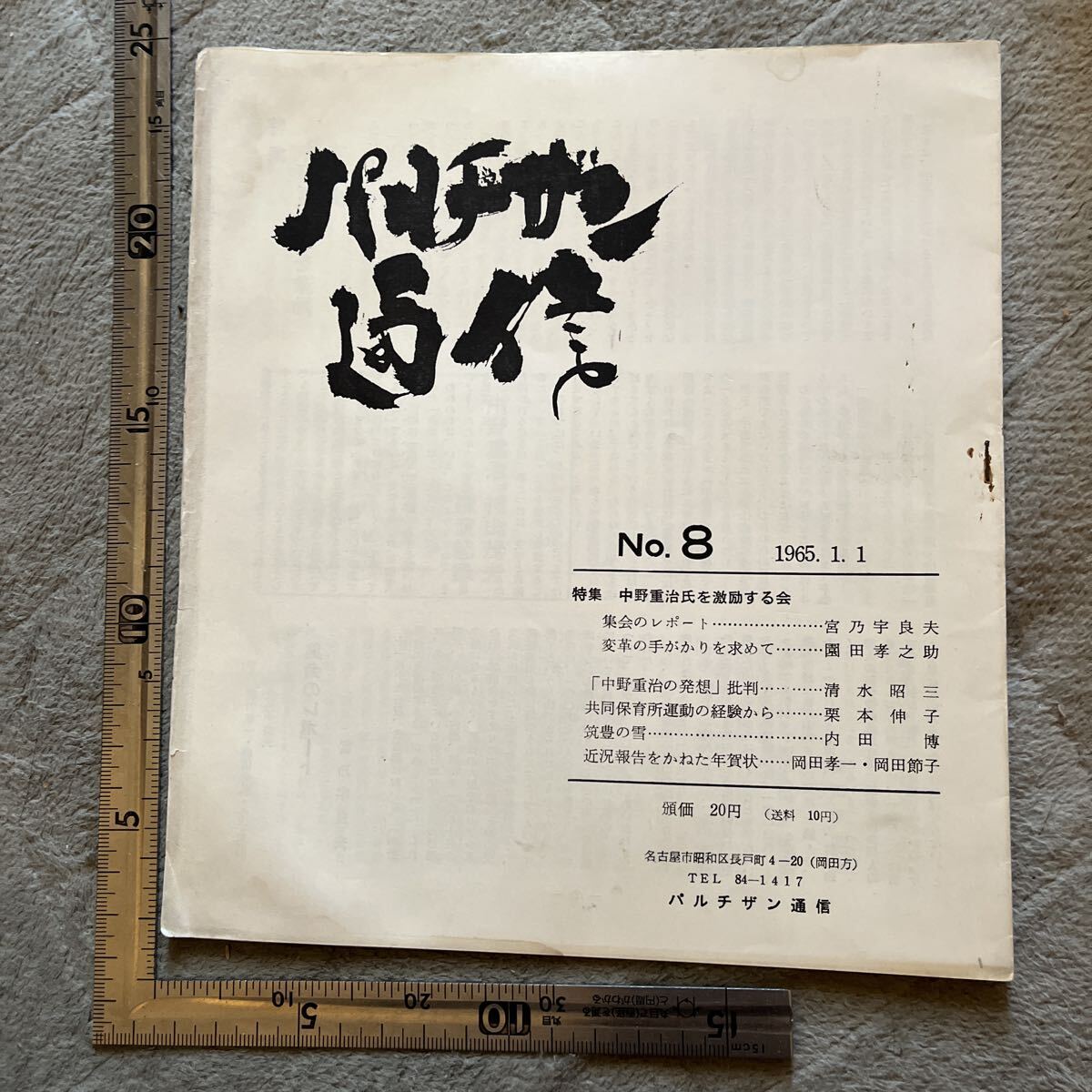 - 『パルチザン通信』第8号/パルチザン通信/昭和40年 特集・中野重治氏を激励する会 岡田孝一