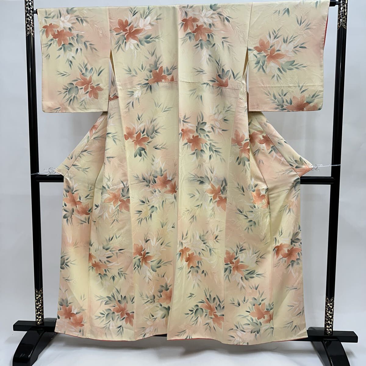 > 【七福】c782 正絹 小紋 地模様 織花 暗文 地文起こし 袷 着物 仕立て上がり 逸品 身丈 約156.5cm 裄 約63.5cm