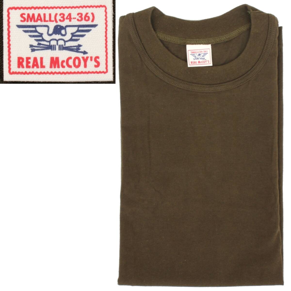 - (51643)未使用REAL McCOY'S旧マッコイ半袖TシャツS (34-36) (緑ミリタリー無地グリーン カーキ オリーブ リアルマッコイズ ジョーマッコイ)