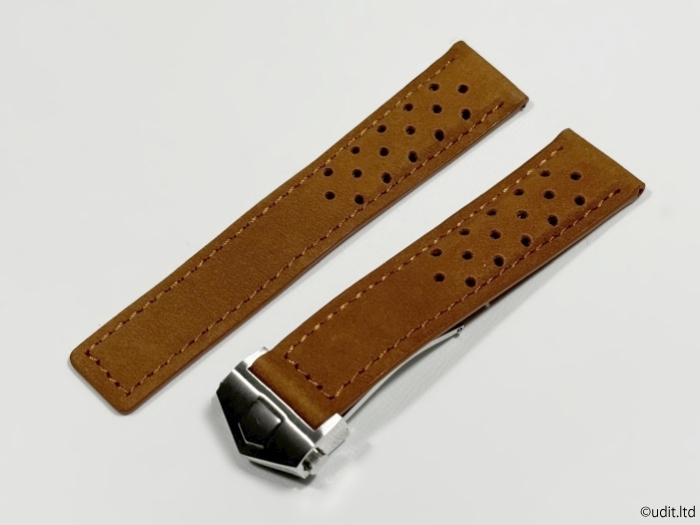 - ラグ幅20mm タグホイヤー対応レザーベルト ライト ブラウン ヌバック 腕時計ベルト 時計用バンド モナコ カレラ アクアレーサー等に