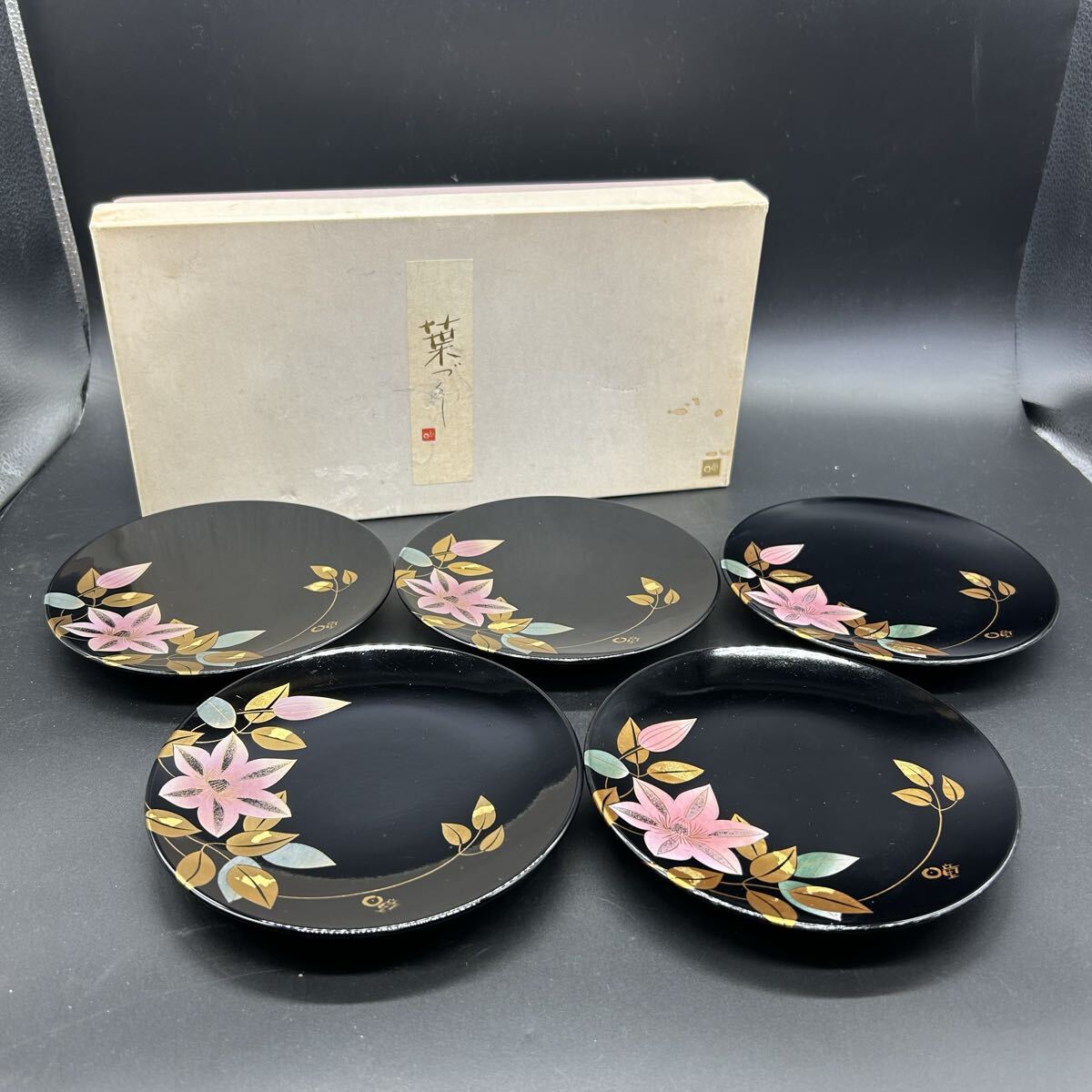 - 安達瞳子 蒔絵 葉づくし 花柄 銘々皿 小皿 漆器 エ27