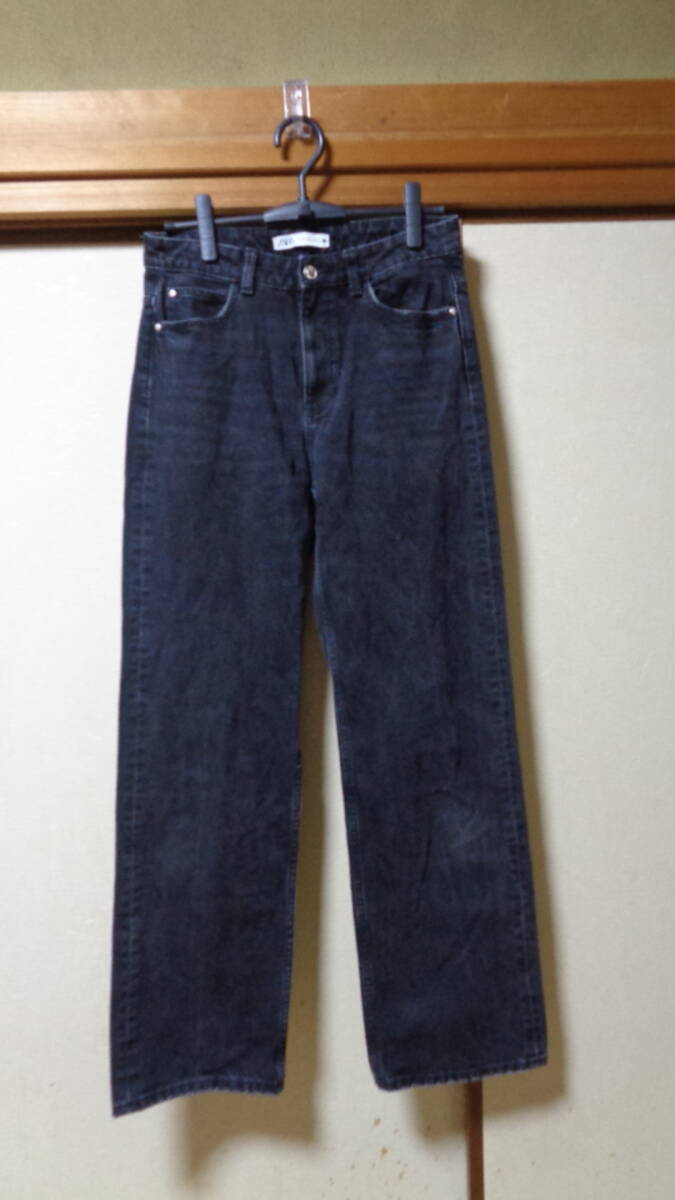 - 送料込み・ZARA 綿100% 黒 ストレート デニム 28