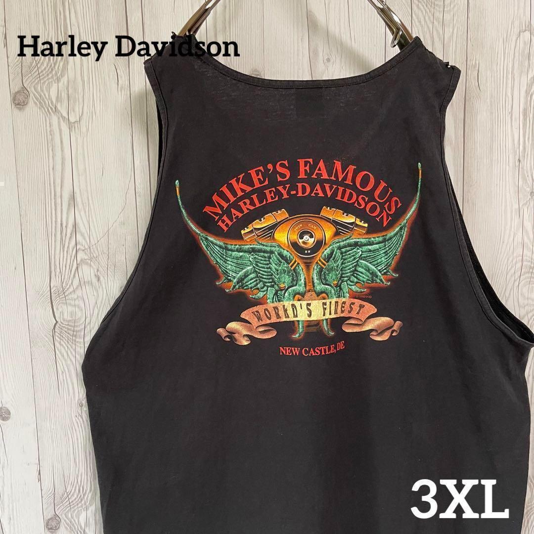 - HARLEY DAVIDSON ハーレーダビッドソン タンクトップ メンズ3XLサイズ ノースリーブ ブラック黒 ライダー デカプリント 袖なしシャツ