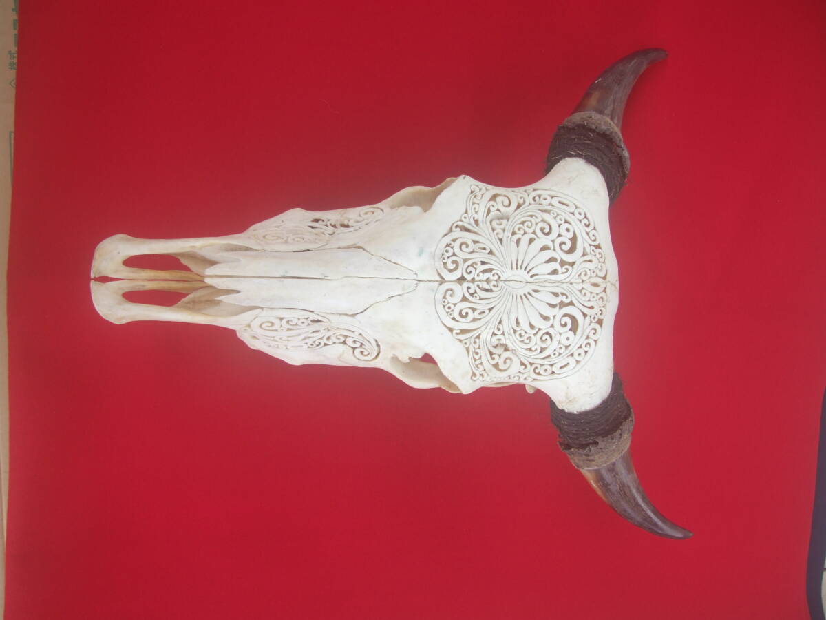 - 希少品☆良品☆バッファロー☆彫刻☆ 頭蓋骨 本物 スカル 骨 頭部 角 標本 剥製 オブジェ 重量約5kg