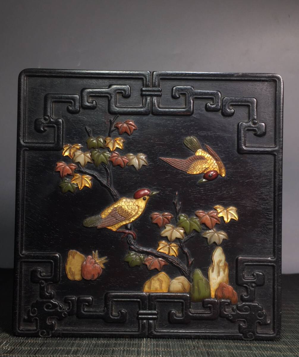 - 秘蔵 古木彫り 小葉紫檀木に 多宝箱をはめ込む 清代 書道具 文房具 時代物 中国古美術 細密彫 置物 賞物 唐物 木彫り 文玩 8.16