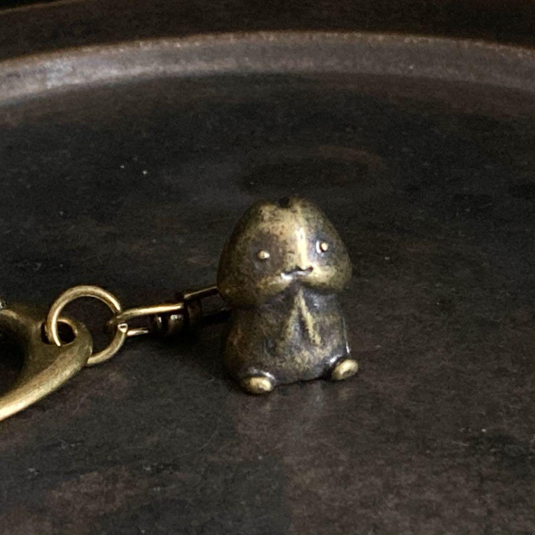 > 109 真鍮 キーホルダー キノコ きのこ ビンテージ 風水 金運 開運 レトロ アンティーク 真鍮製 チャーム アクセサリー パーツ ハンドメイド