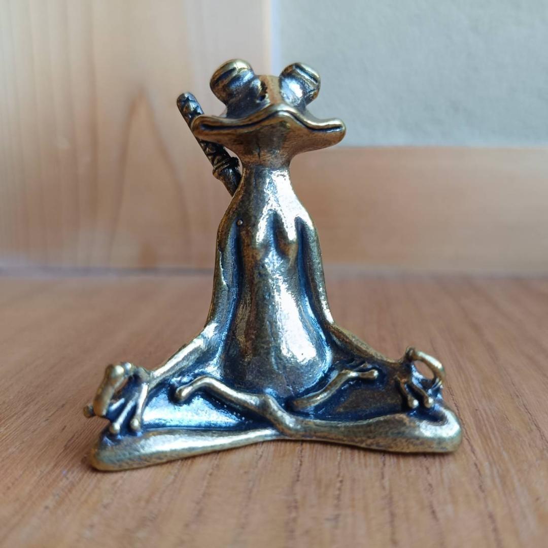 - カエル忍者瞑想中!像 真鍮 ミニオブジェ ユニーク 全高約5.2cm