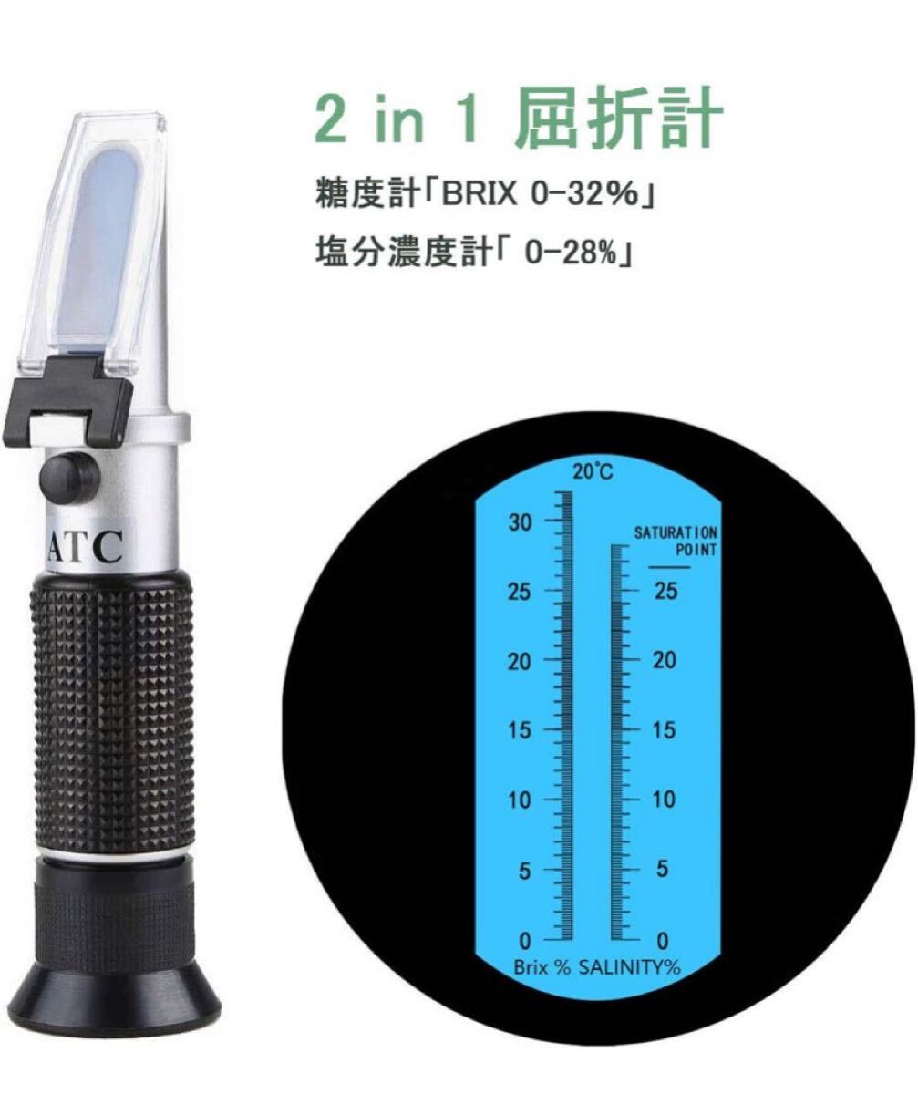 - 糖度・塩分濃度屈折計 C-Timvasion 手持屈折計 糖度計「BRIX 0-32%」塩分濃度計「 0-28%」2 in 1屈折計 糖度計