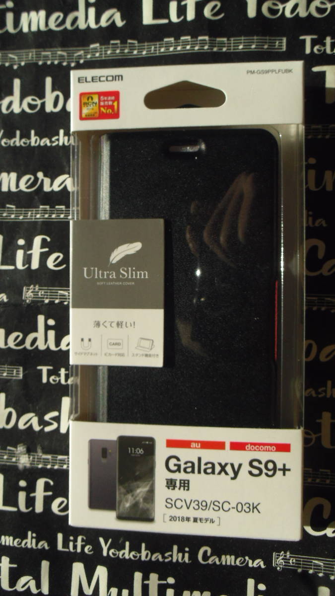 - ELECOM Galaxy S9+ SC-03K SCV39手帳型 ソフトレザー 驚く程薄くて軽い マグネットフラップ ブラック スタンド機能付 ヤフネコネコポス無料