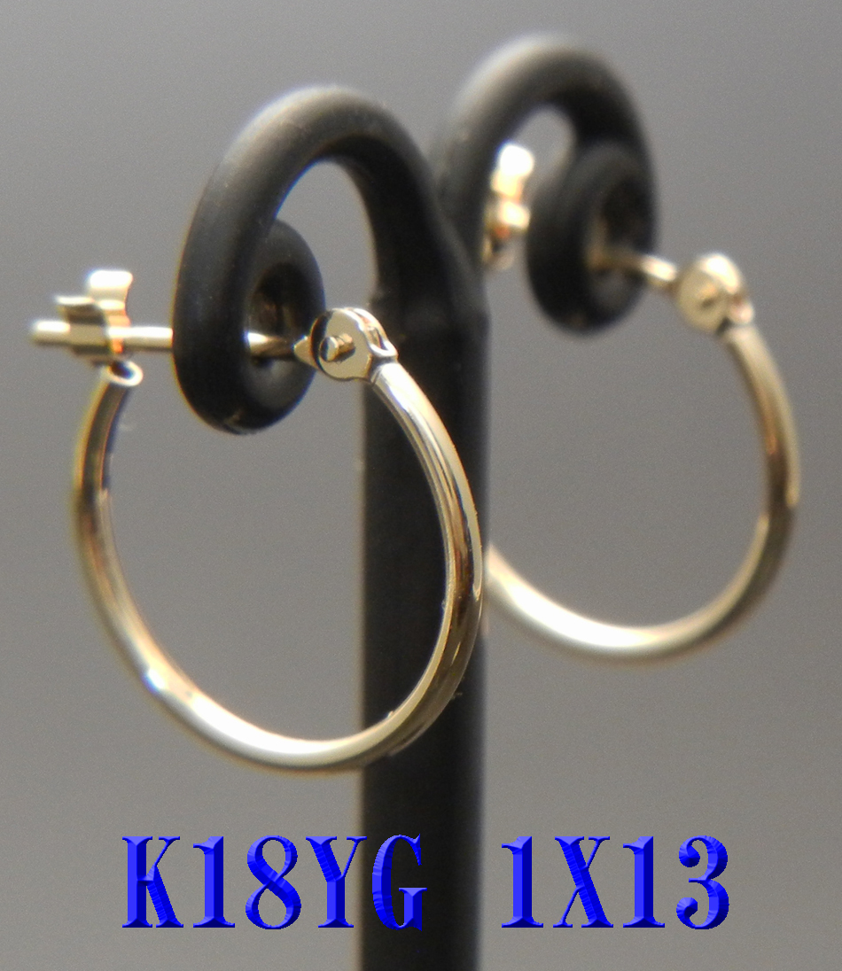 > 特別セール!K18 18金ゴールド 1x13mm フープピアス 新品 日本製 スナップピアス 刻印有り