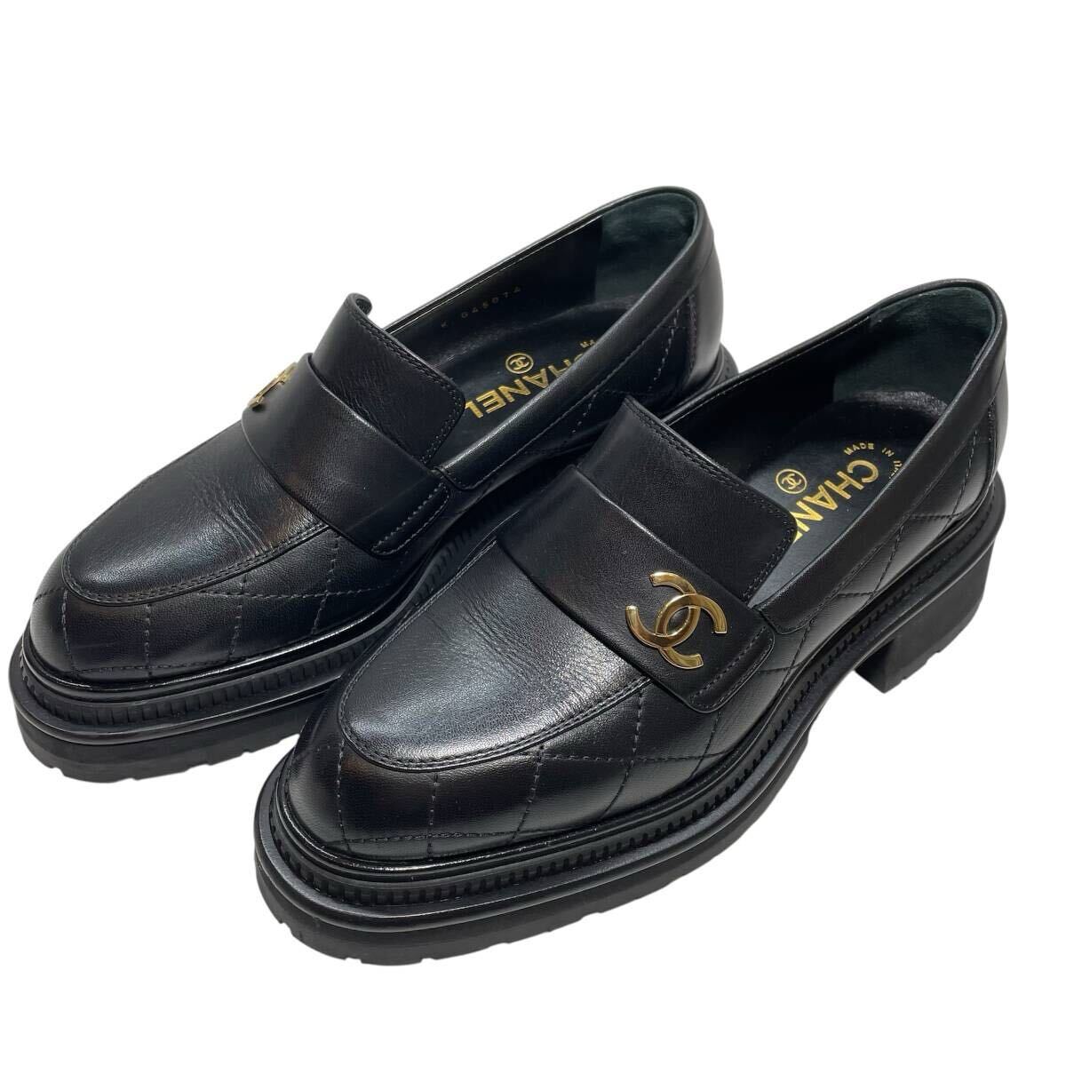 > シャネル マトラッセ ローファー 厚底 23A G45074 ココマーク ブラック/ゴールド金具 箱 保 シューズ 靴 #37 約24cm CHANEL