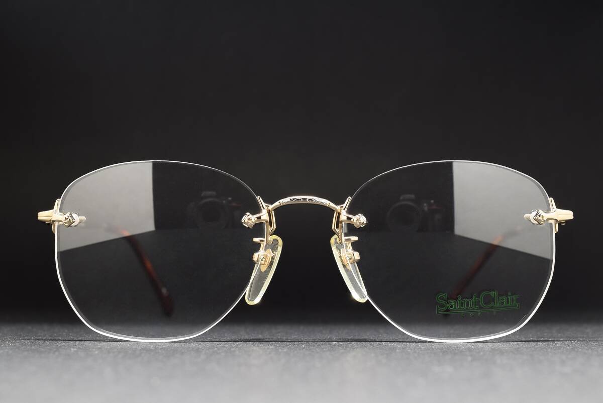 > デッドストック Saint Clair PARIS SC-2006 COL.47 53-17 ツーポイント メガネ サングラス フレーム ゴールド リムレス ふちなし 彫金