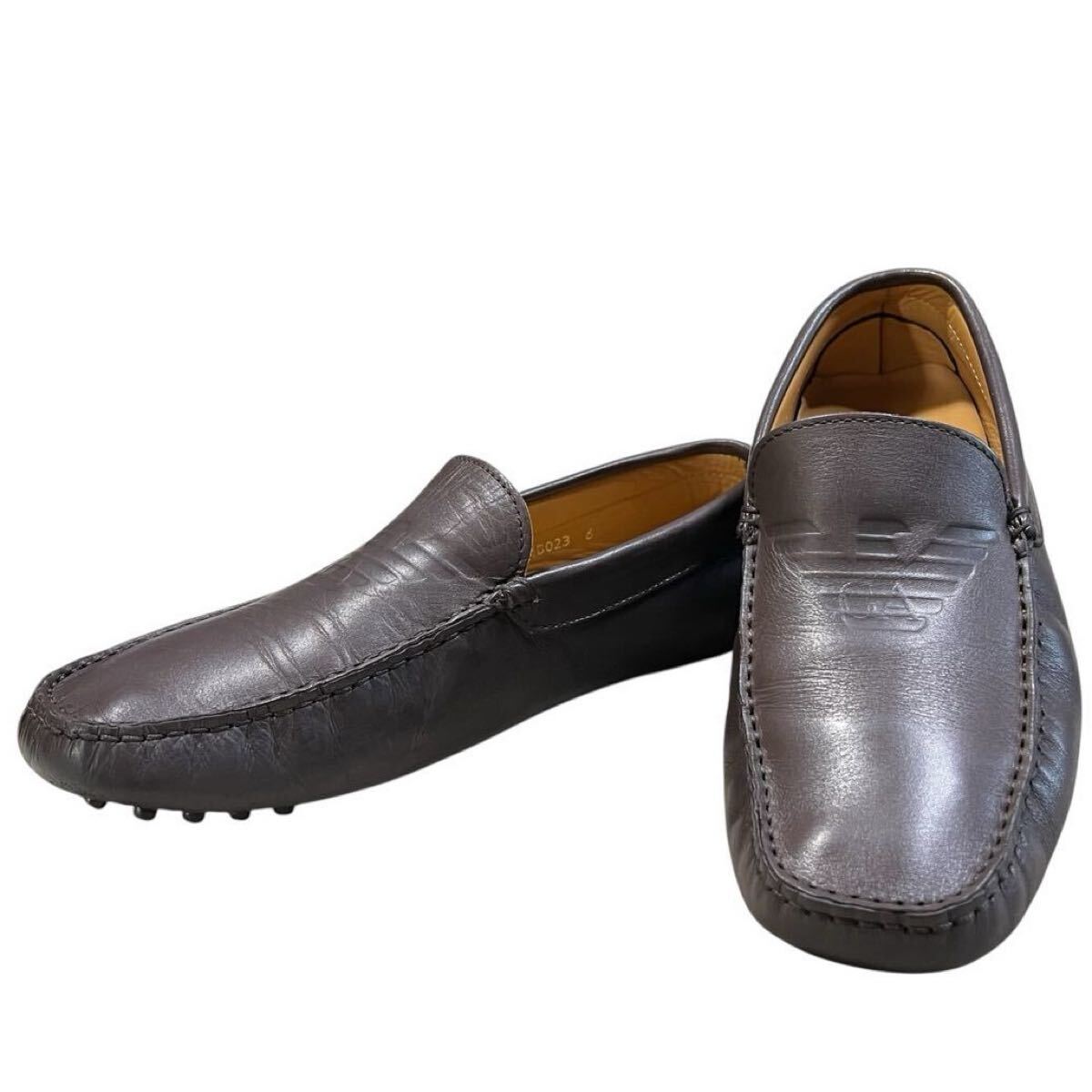 - エンポリオアルマーニ イーグルビックロゴ 本革 レザー ドライビングシューズ ローファー靴 6(24.5) EMPORIO ARMANI ブラウン
