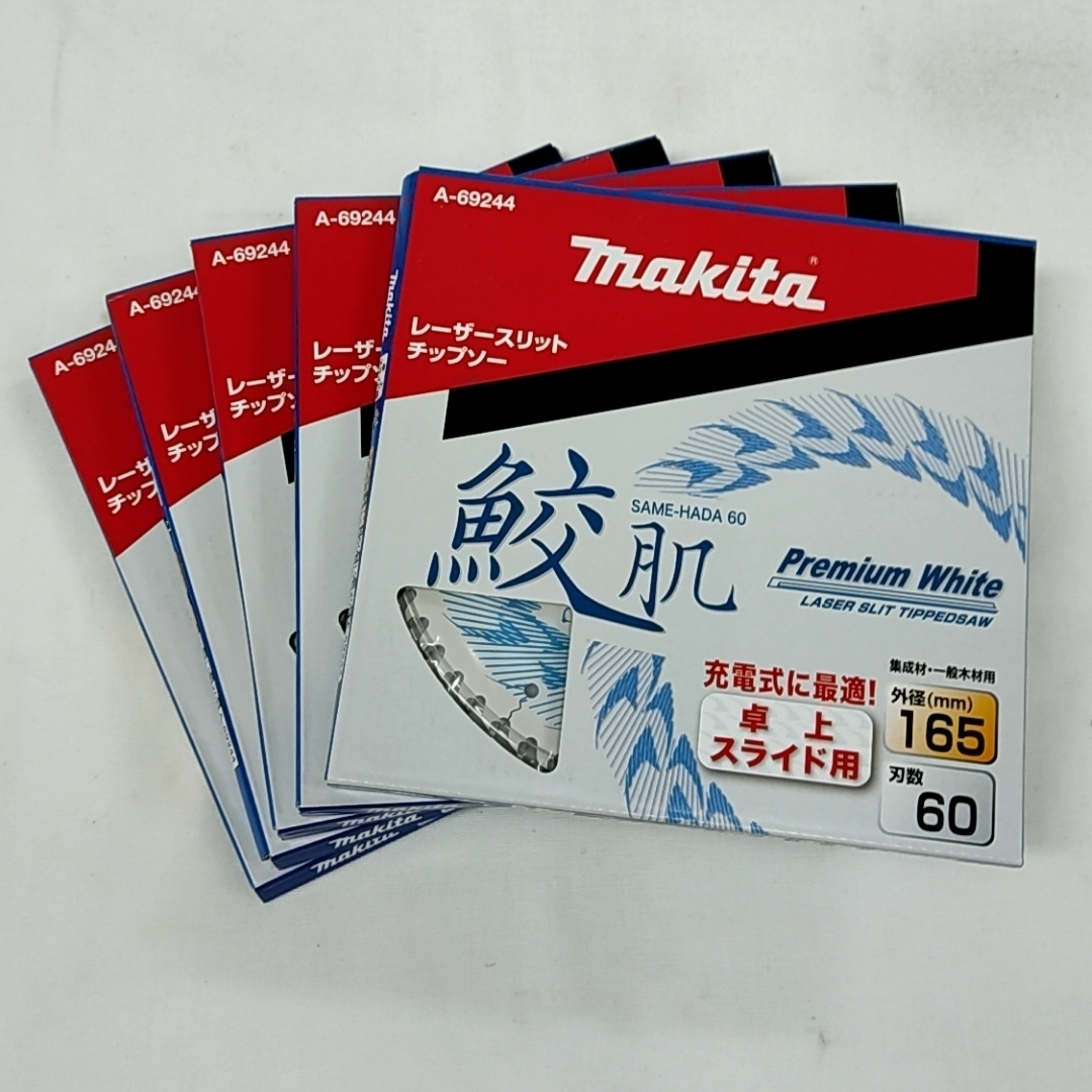 - マキタ 165mm 鮫肌 卓上・スライドマルノコ用プレミアムホワイトチップソー A-69244×5枚 (60枚刃) [集成材・一般木材用]▼■新品/未使用■