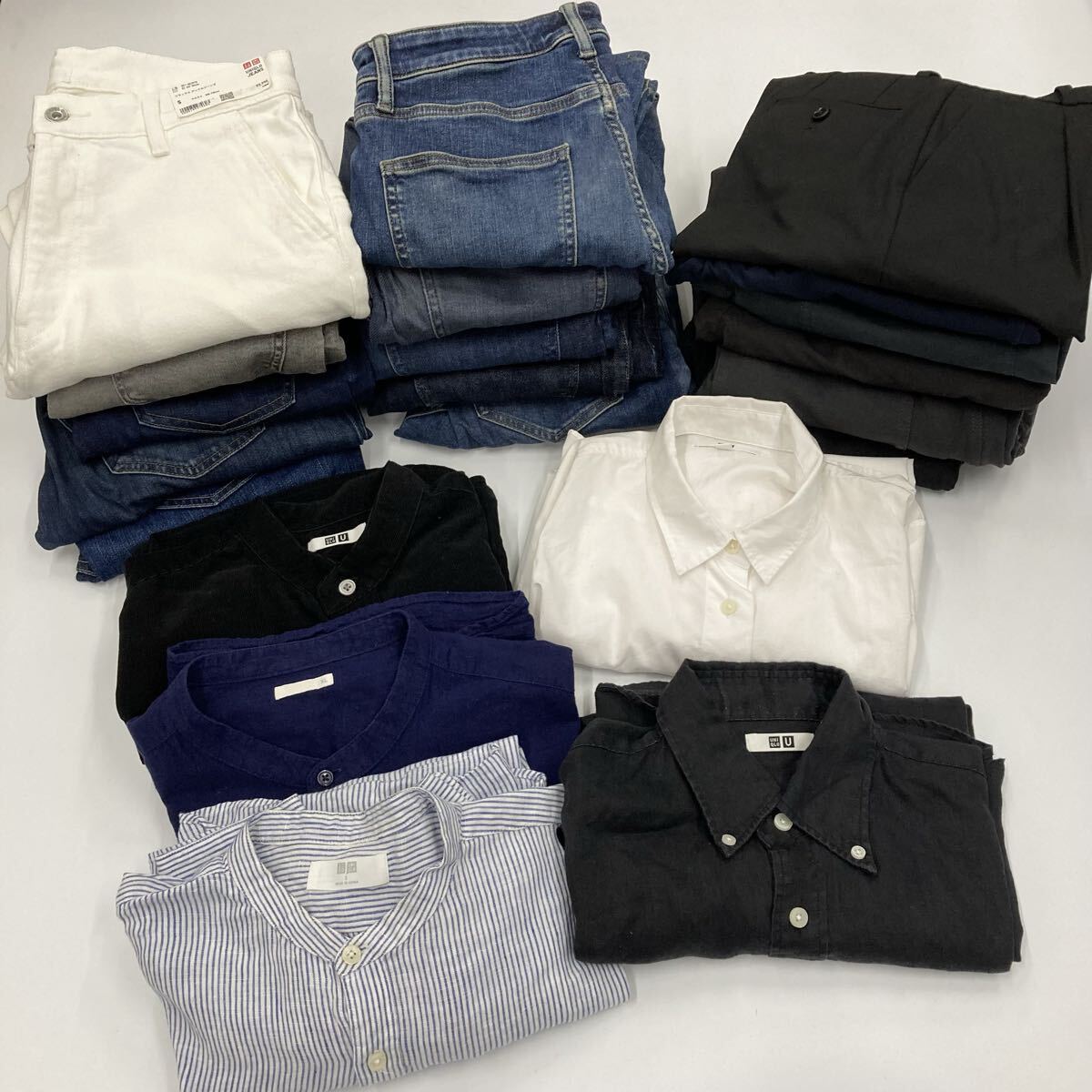 > UNIQLOユニクロ まとめ売り 21点セット 半袖 長袖 シャツ ブラウス バンドカラーシャツ ストレッチパンツ ジーンズ