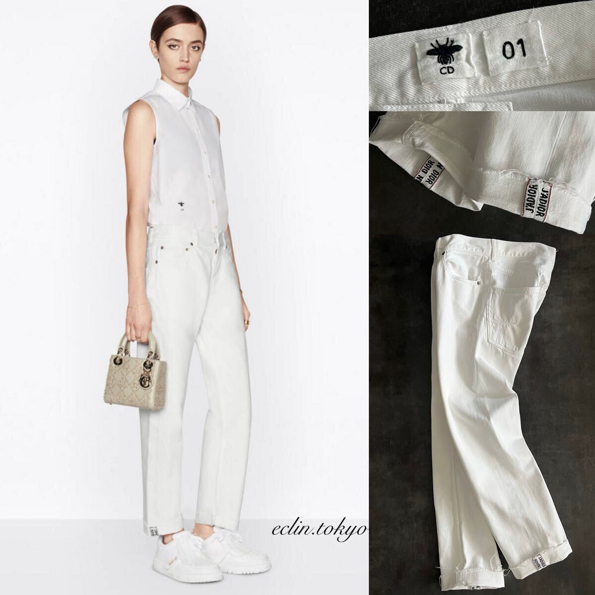 - 【E4478】定価24万円!Christian Dior ディオール《最高傑作!裾ロゴ刺繍テープ入り》ボーイフレンド デニム ジーンズ パンツ 白 ホワイト