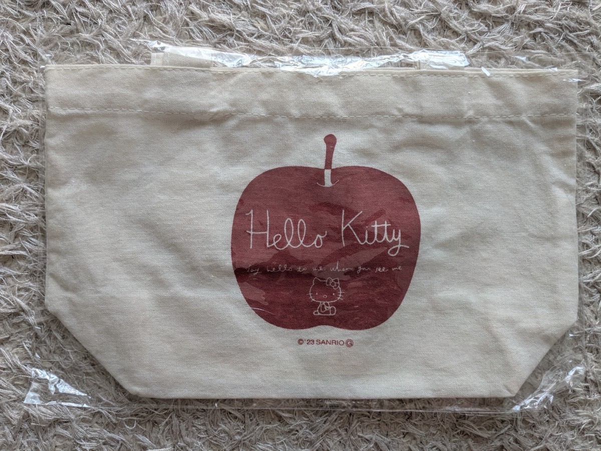> ハローキティ ミニトートバッグ ベージュ生成り かわいいリンゴアップルプリント 洋服の青山 非売品 未使用品