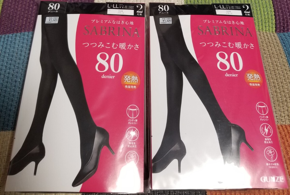 - SABRINA プレミアムなはき心地 発熱タイツ 椿オイル L-LL 80デニール 4足セット 新品 タイツ GUNZE グンゼ ブラック