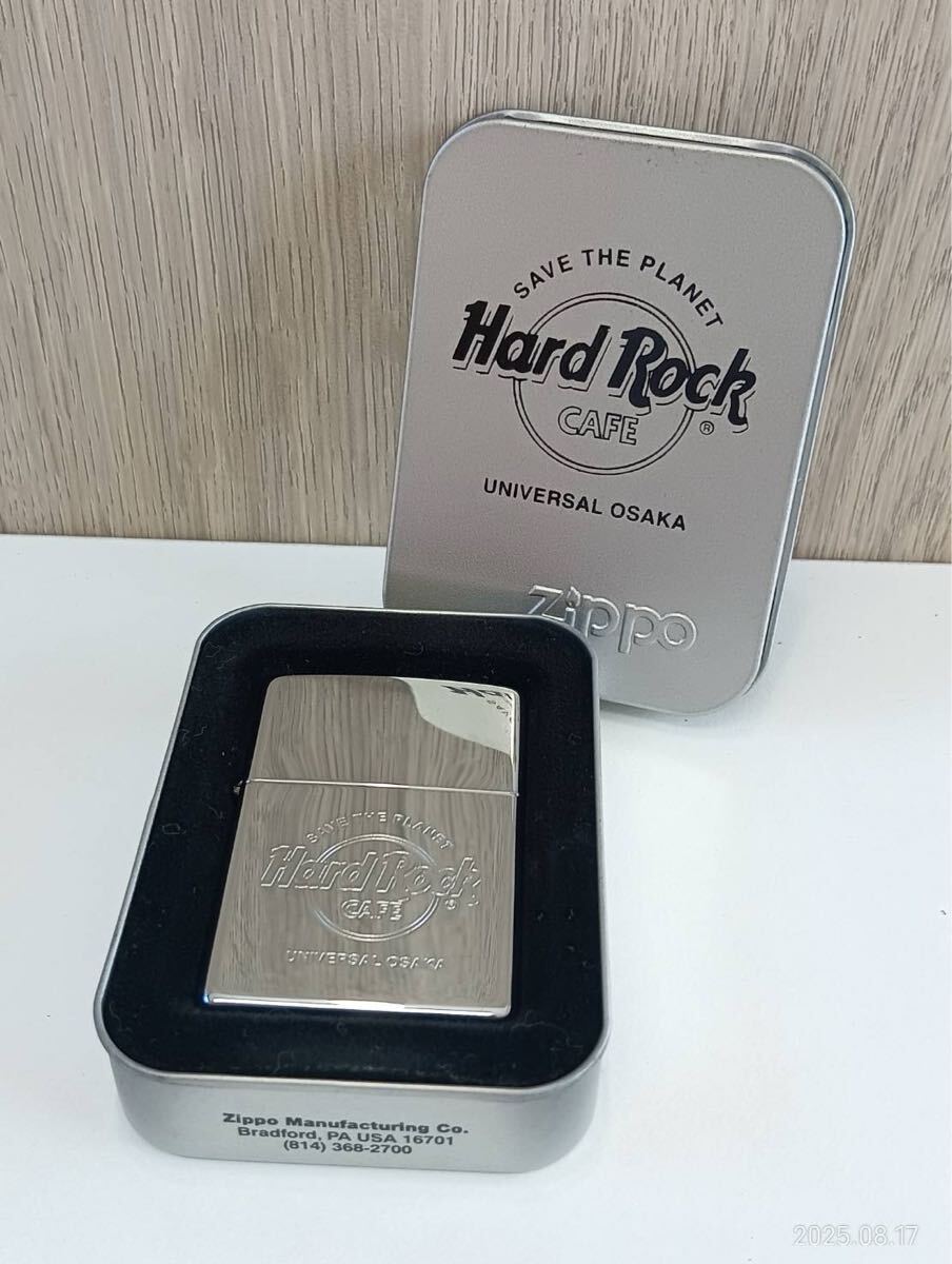 - 【中古品】Hard Rock Cafeハードロックカフェ UNIVERSAL OSAKA Zippoジッポライター オイルライター USA製 シルバー 喫煙グッズ ケース付き