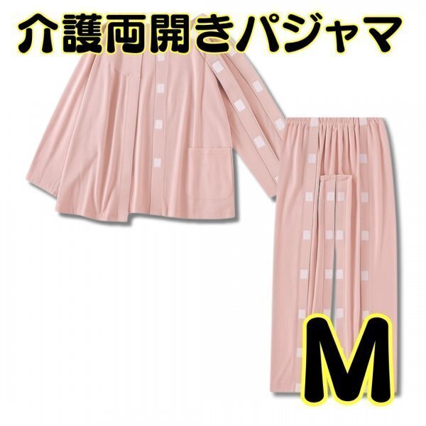 - 【介護士監修】シルク 介護パジャマ 上下セット 長袖 フルオープン 着替え 通年用 入院 点滴 術後 授乳 身体検査 M ピンク