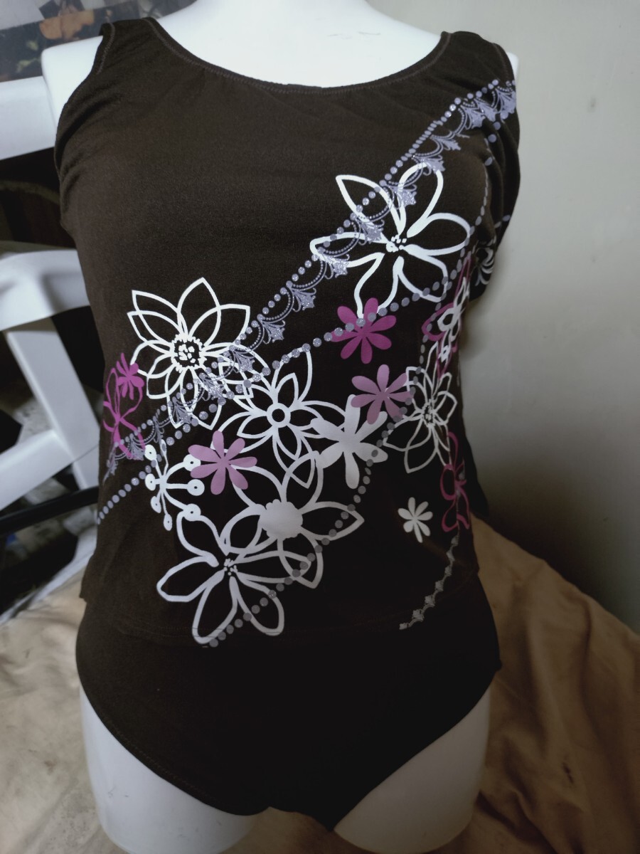 - M4438◆東京印◆セレブなブラウン系花柄ワンピース水着◆9М