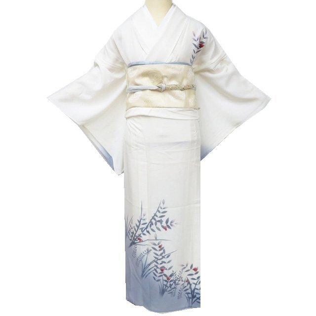 > 夏物 夏着物 付け下げ 付下げ 訪問着 着物 中古 正絹 絽 植物文様 乳白色 多色 身丈158.5cm 裄65.5cm M きもの北條 A1257-16