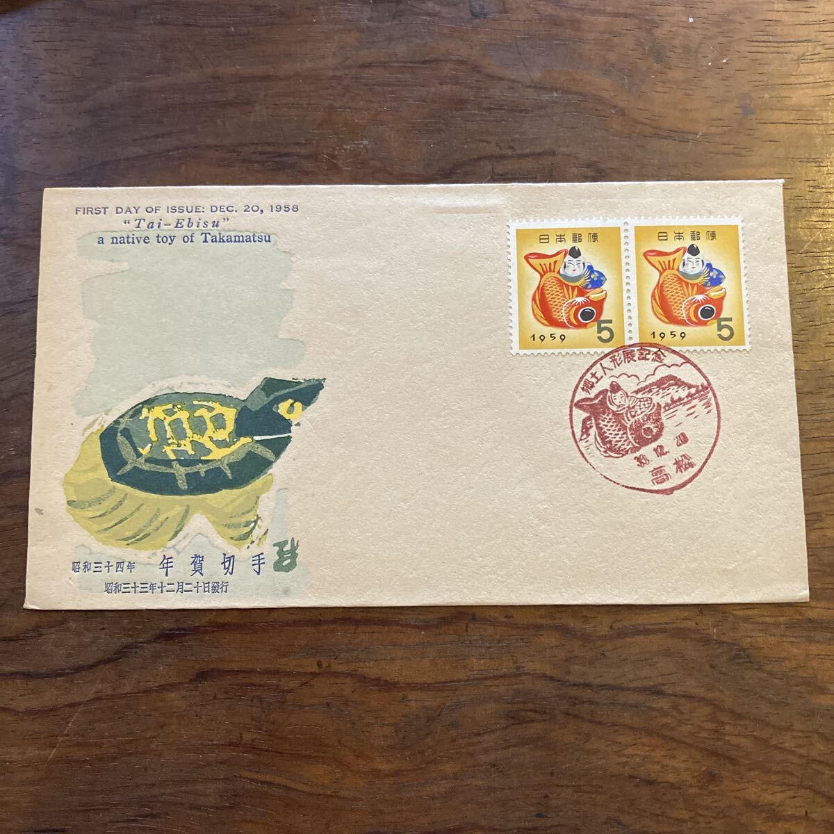 - [猫]昭和30年代の古い初日カバー 鯛 恵比寿