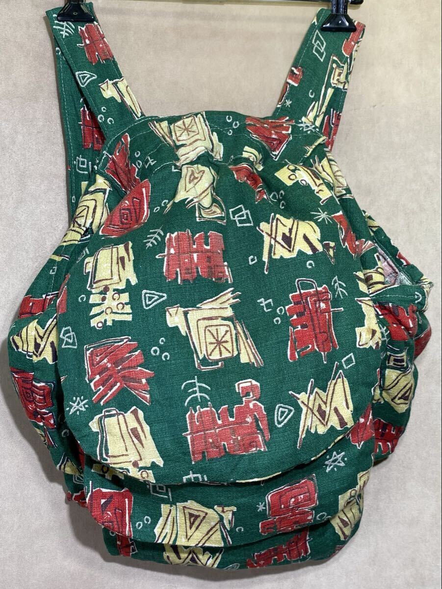 - 1950s 総柄 ファブリック グリーン リュック ★ ビンテージ 50s 60s バッグ ロカビリー アトミック 緑 リュックサック カバン 鞄