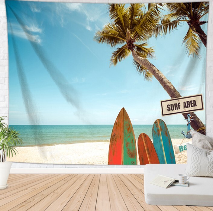 - 【サーフボード・海辺・海・ビーチ★タペストリー 100×150cm】高品質デジタル印刷 模様替え、お部屋の雰囲気が変わる タペストリー