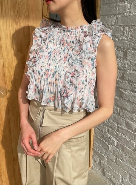 > ★夏秋デート完売大人気【SNIDELスナイデル】バックリボンシャーリングブラウス★上品ピンク花柄★旅行オフィスオケージョン