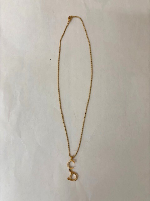 - Christian Dior/クリスチャンディオール ロゴ ゴールドカラー ラインストーン ネックレス