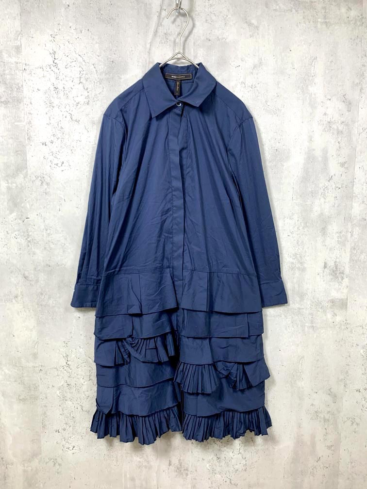 > ゆうパケットOK BCBGMAXAZRIA ビーシービージーマックスアズリア フリル シャツ ワンピース sizeS/紺 ■■