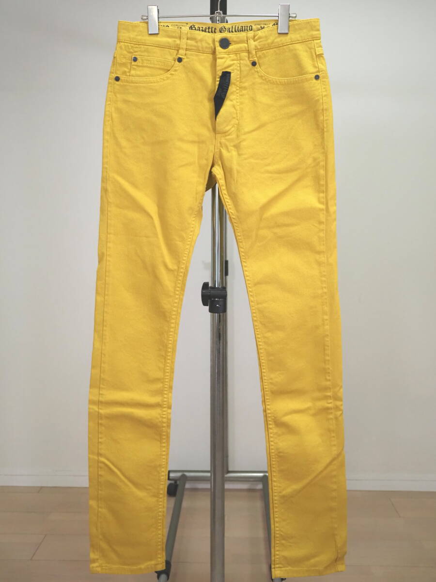 > 美品 John Galliano ジョンガリアーノ 12SSロゴ刺繍デニムパンツ44黄色 Italy製