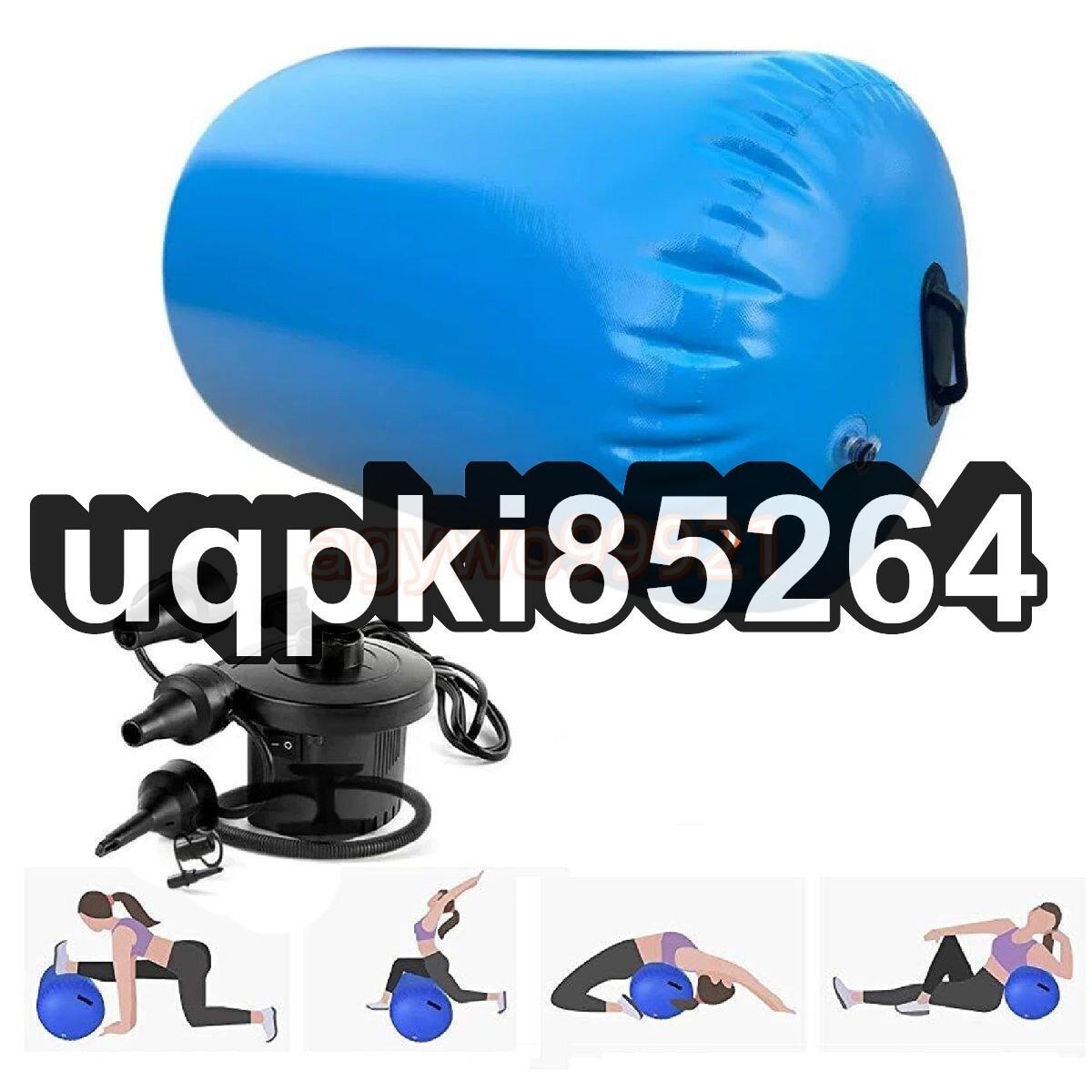 - 体操 エアバレル エアマット エアーロール バレルロール 体操 バク転練習 体操エアロール バク転補助器具 電動ポンプ付き ブルー 90*100cm