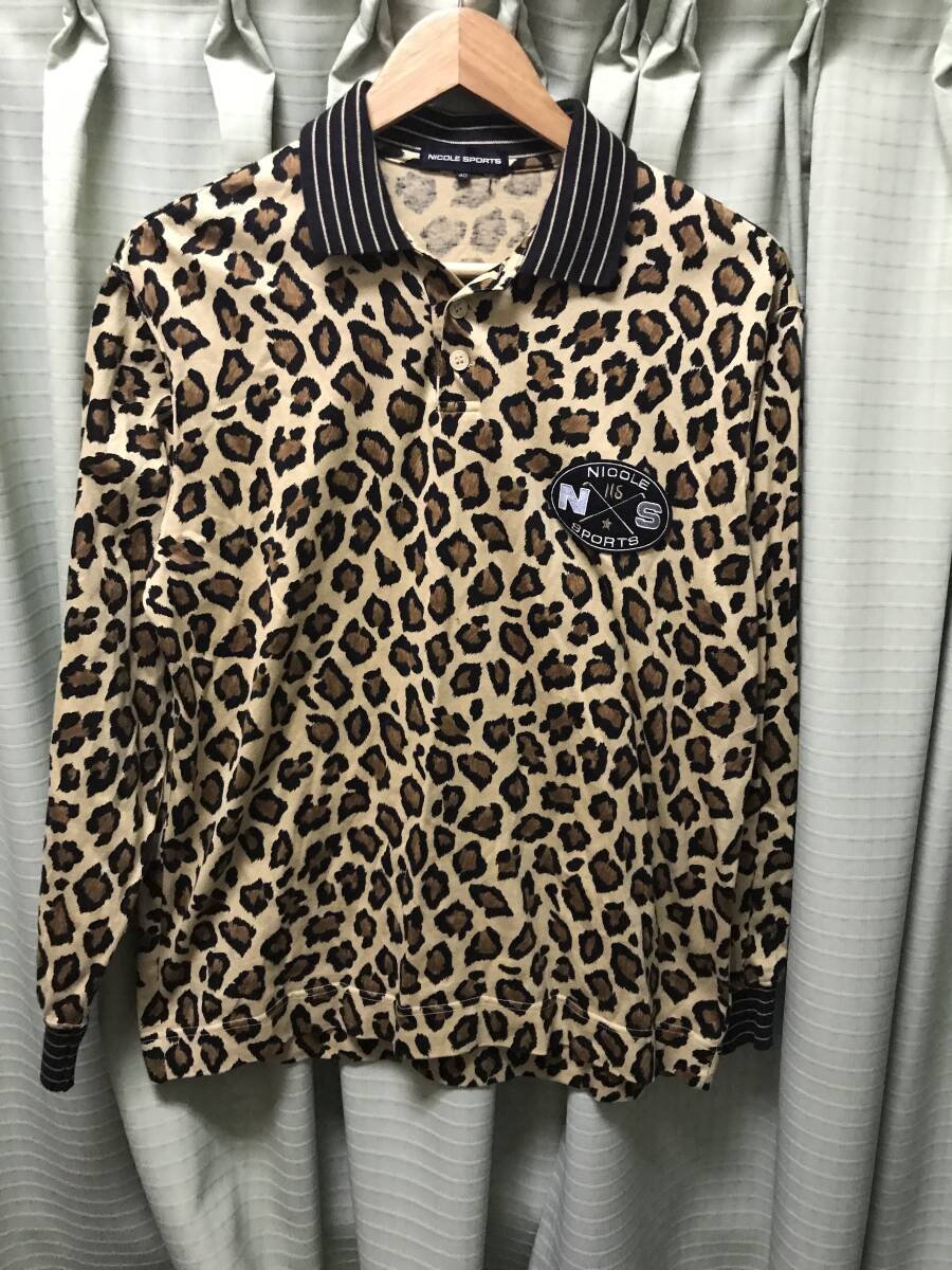 - ヒョウ柄長袖ポロシャツ ロカビリー ロックンロール クリーム Z669