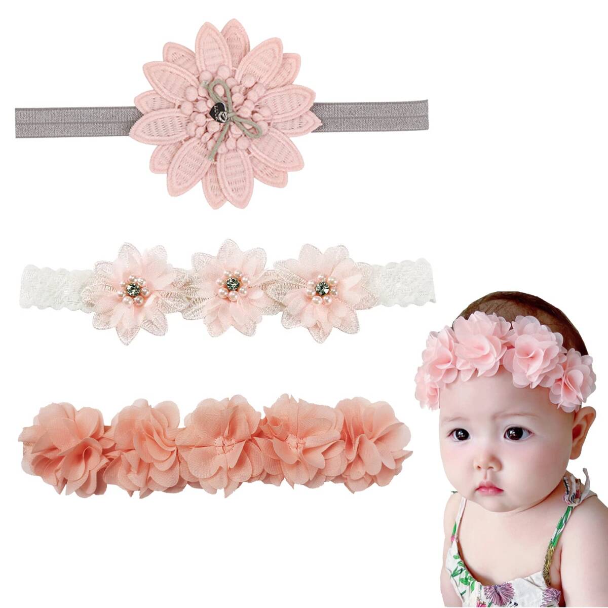 - ヘッドバンド レースバンド ベビーヘアバンド お祝い おしゃれ かわいい 記念日 ヘアアクセサリー 誕生日 髪飾りお花 子供 撮影