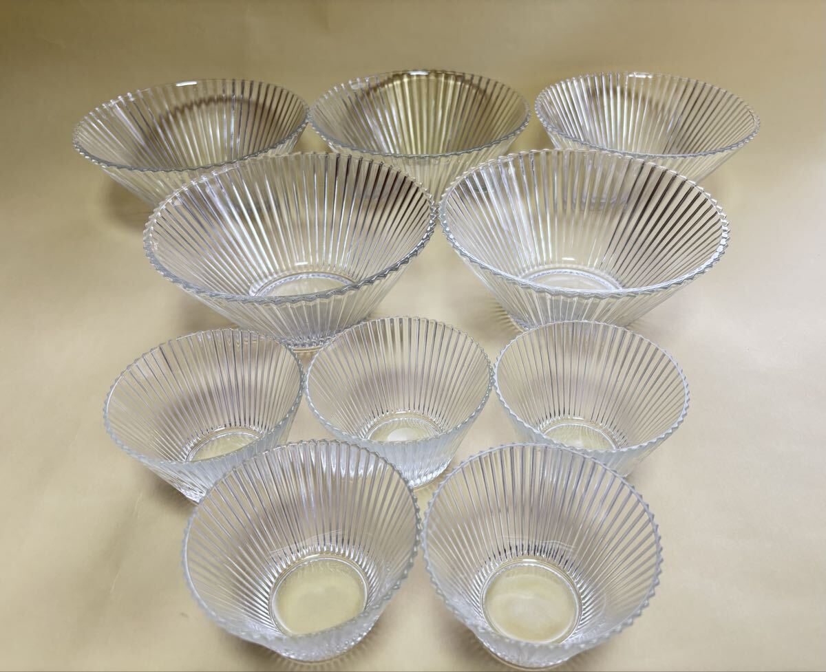 - 未使用 縦縞模様 ガラス中鉢と小鉢 5セット 10点 そうめん サラダボウル他