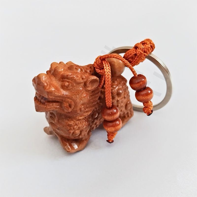 - 麒麟 根付け 木彫り キーホルダー ストラップ 木製 お守り メンズ レディース 開運 魔除け キーリング 車用 風水 招福 男性向け オブジェ