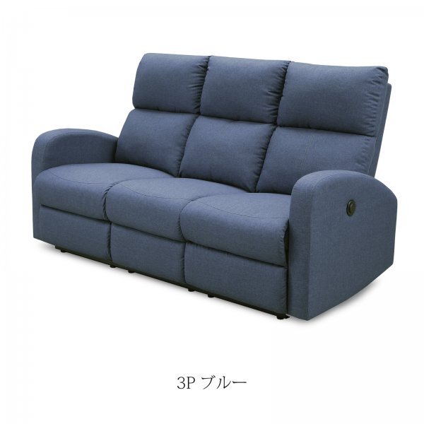 - 電動リクライニング ソファ 3人掛け ハイバック仕様 フットレス ファブリック