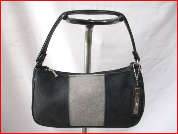 - ANDREW GN/アンドリューゲン◇スエード ハンドバッグ BK×GY ノベルティ メタルプレート付 W23cm