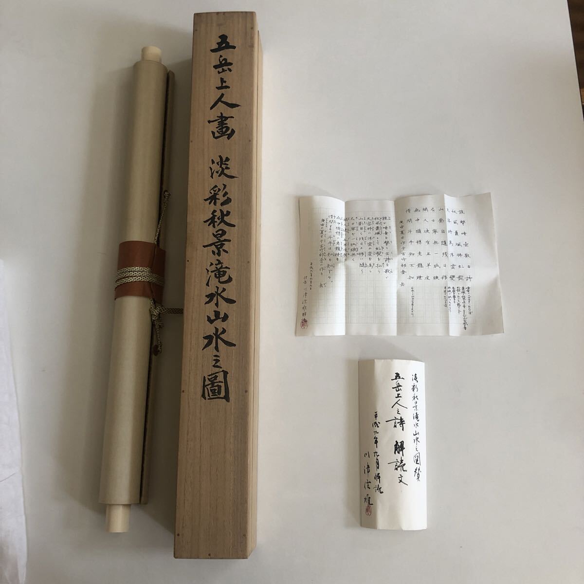 - 五岳上人書画 淡彩秋景滝水山水 巻物 掛軸